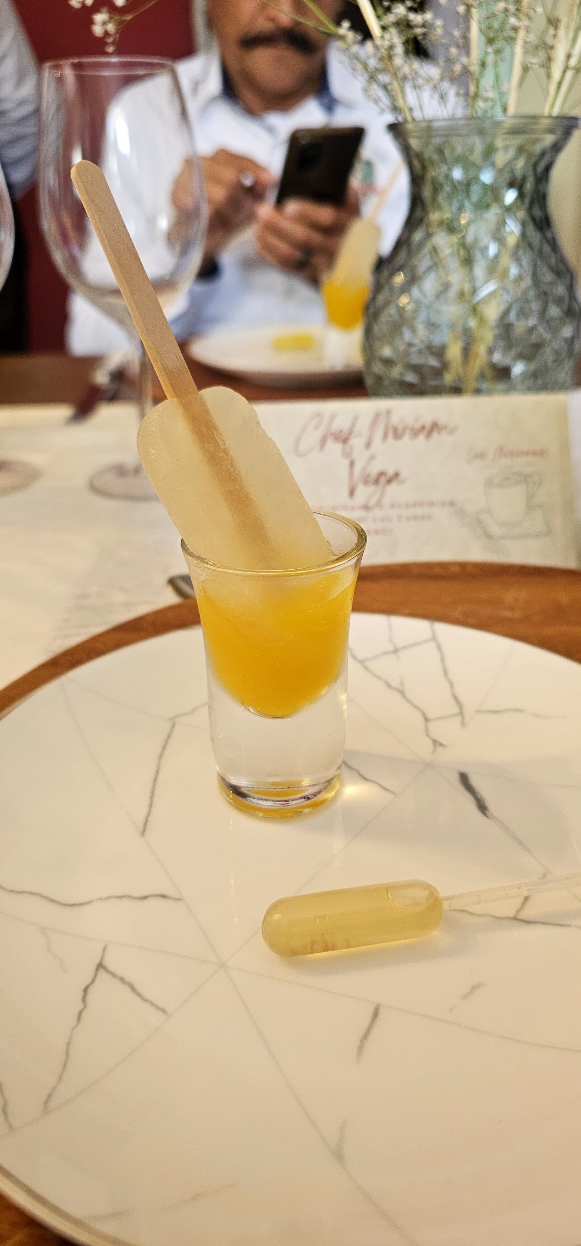 un limpiador de paladar muy especial, inspirado en uno de los establecimientos más icónicos de La Paz. Este refrescante sorbete ha sido cuidadosamente diseñado para capturar la esencia de nuestra región y preparar sus paladares para las delicias que aún están por venir.