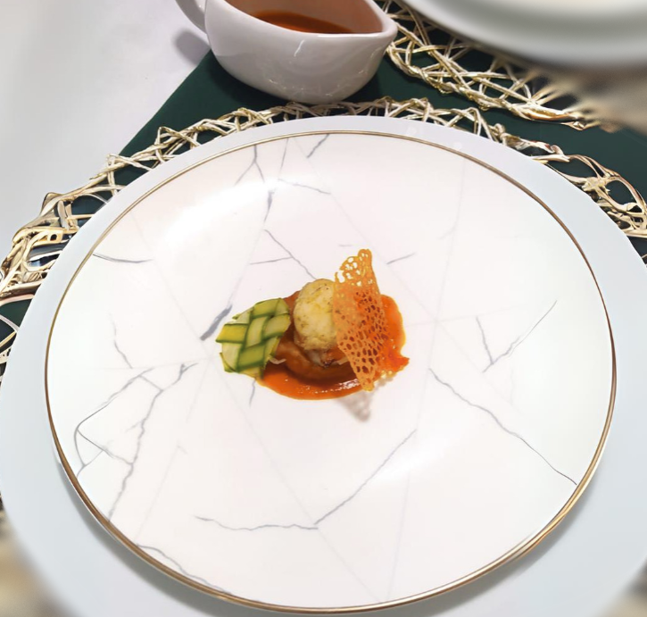 Además, el plato incluye una infladita de maíz con camote, que añade una dimensión reconfortante y ligeramente dulce. Esta infladita, inspirada en la cocina tradicional, aporta una base cálida y sustanciosa al conjunto del platillo.
