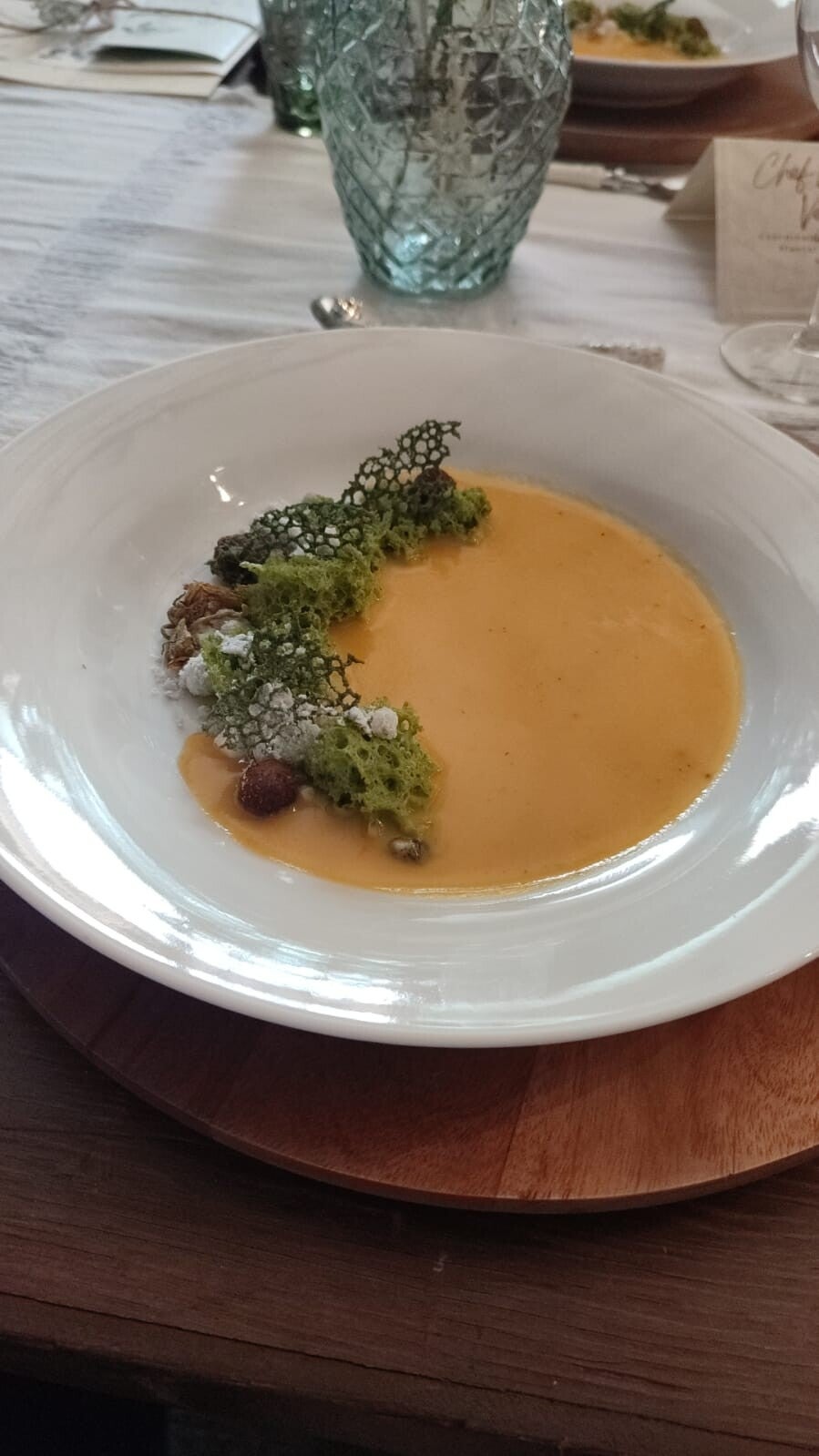 - Se recomienda consumir este platillo combinando la crema con los diferentes elementos del oasis para obtener una mezcla de texturas y sabores diversos.